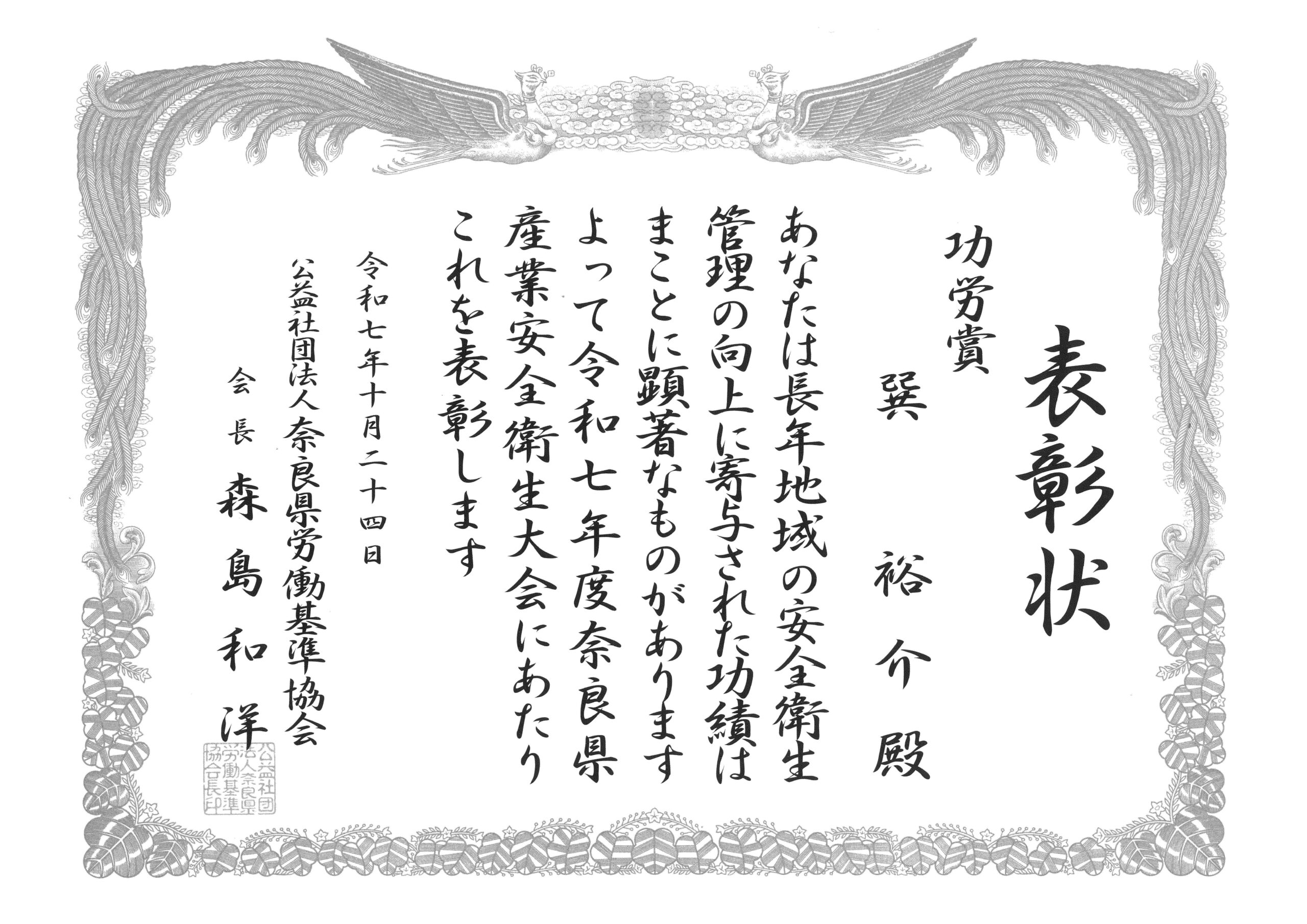 新着情報NEWS トピックス 2025年10月31日 弊社所長の巽が奈良県労働基準協会より功労賞を受賞しました 弊社所長の巽が、長年にわたり労働安全衛生の推進に尽力した功績により、奈良県労働基準協会より功労賞を受賞しました。今後も当社は、このたびの受賞を励みとし、労働安全衛生のさらなる向上と快適な職場環境の実現に努めてまいります。 一覧を見る